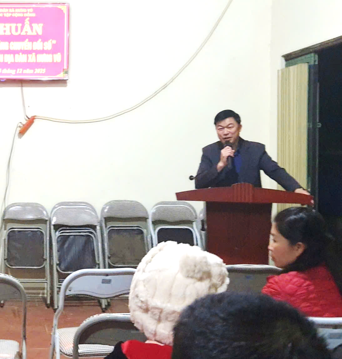 Tối ngày 24/12/2025, tại Nhà văn hóa thôn Làng Mỏ, Trung tâm Học tập cộng đồng xã Hưng Vũ tổ chức lớp tập huấn “Nâng cao kỹ năng chuyển đổi số cho người dân trên địa bàn xã”.