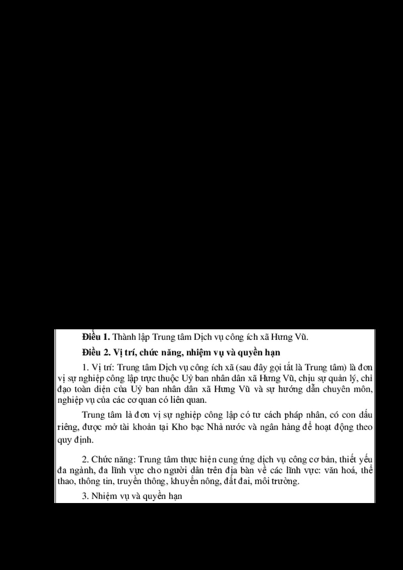 | Tiêu đề văn bản | Quyết định thành lập Trung tâm dịch vụ công ích xã | ||
